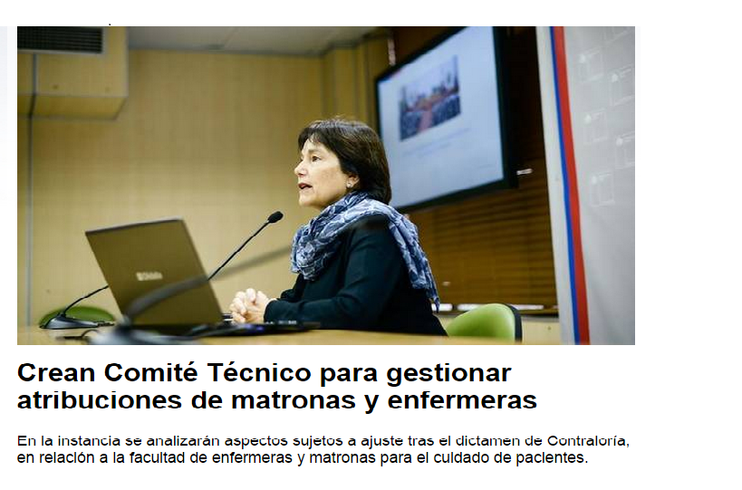 Magaly Miranda, presidenta de FENASENF, junto a Paola Pontoni, presidenta del Colegio de Enfermeras de Chile, entregaron una carta dirigida a la Ministra de Salud solicitando que se inicie a la brevedad el comité técnico comprometido por ella, para trabajar los temas en torno al dictamen emitido por la Contraloría General de la República, que confirma que las labores al interior de unidades de neonatología no son exclusivas de matronas.