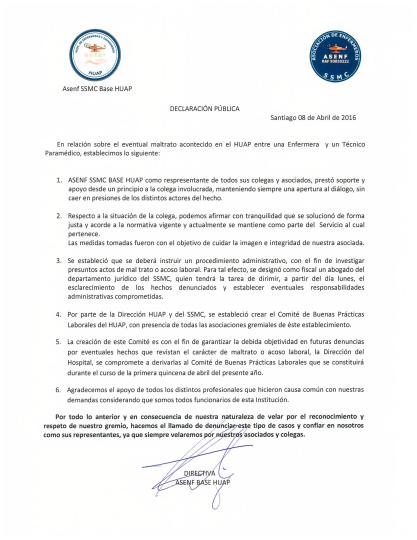 Declaración Pública ASENF SSMC BASE HUAP
