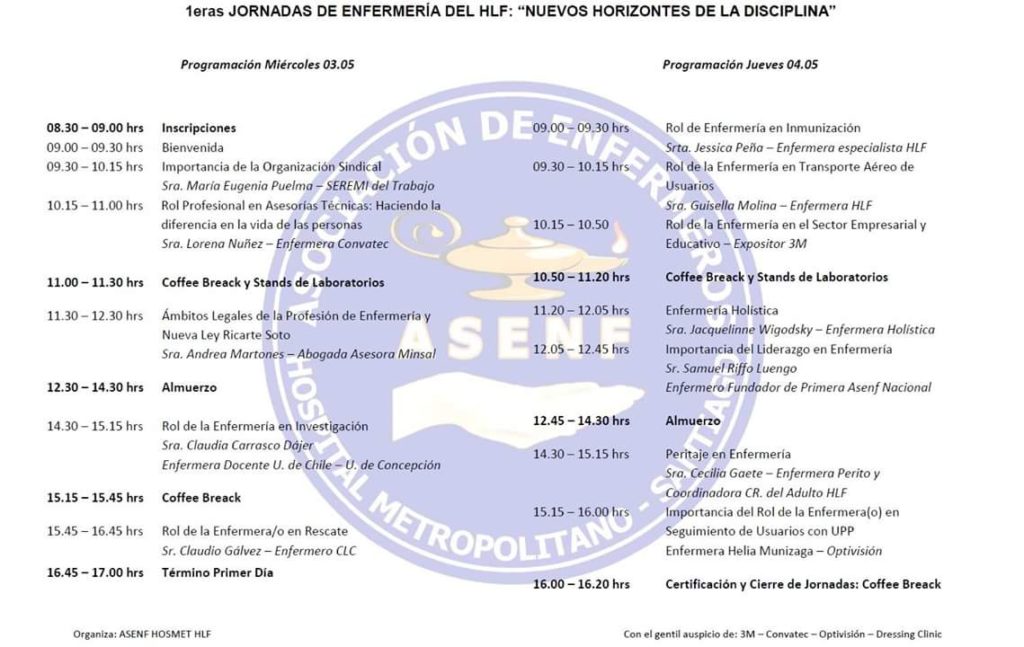 El objetivo principal de las jornadas fue informarles a Enfermeras y Enfermeros que existen diversas oportunidades laborales en la profesión. Por ello, se invitaron a variados expositores con formación y desempeño en muchas materias de interés para el desarrollo de la profesión