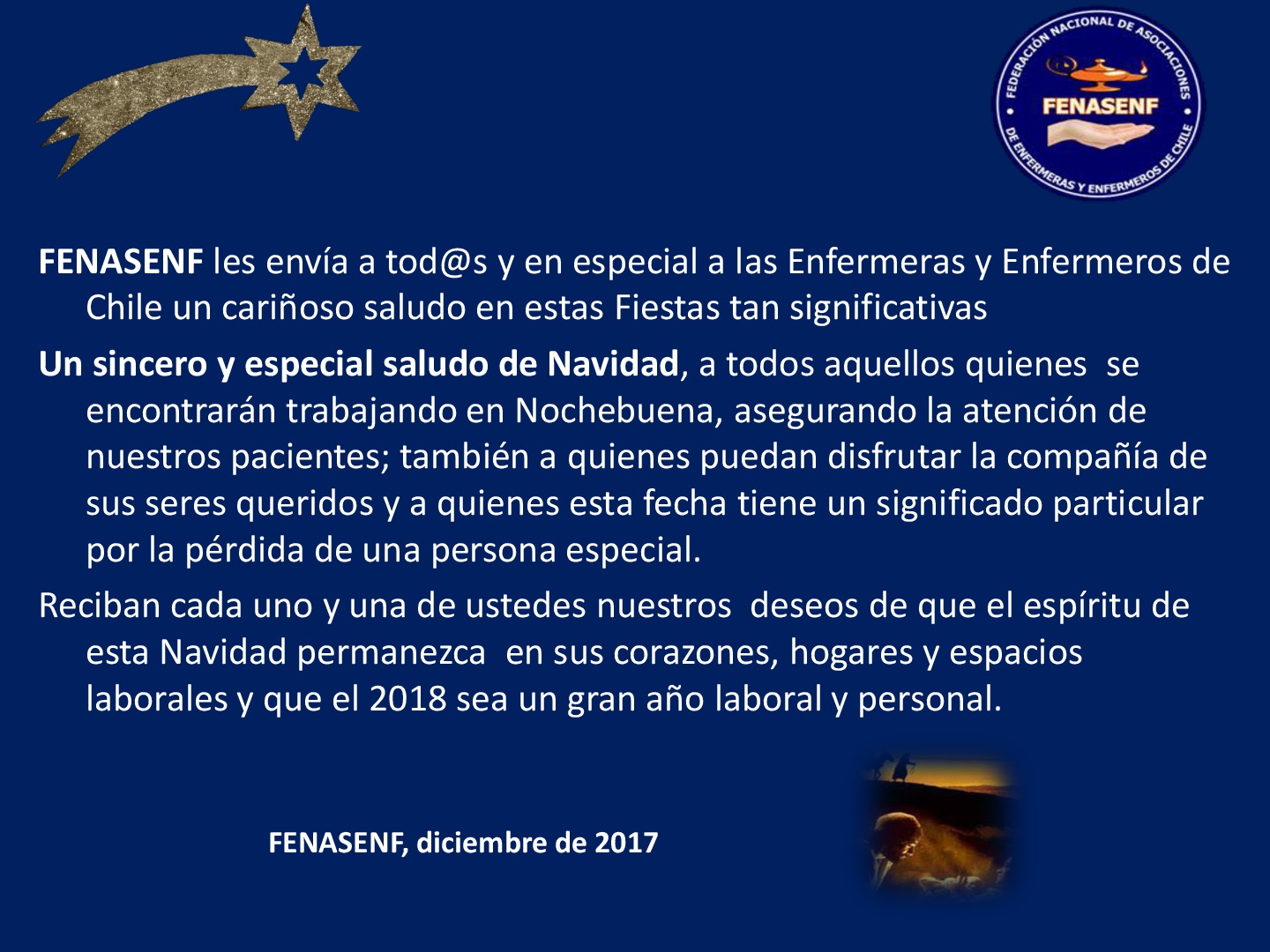 FENASENF envía a tod@s y en especial a las Enfermeras y Enfermeros de Chile un cariñoso saludo en estas Fiestas tan significativas