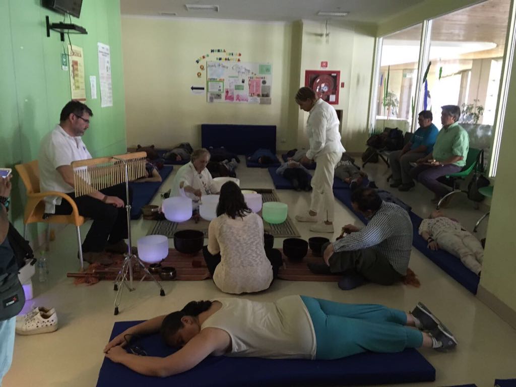 Según cuenta Natalia existen centros internacionales muy prestigiosos que ocupan estas terapias, es por eso y con la evidencia que recogieron de estos establecimientos, que comenzaron a aplicarlos en el Hospital. “Como equipo comenzamos a hacer calendario para las terapias, acordamos que iban a ser los días viernes, por un tema de facilidad para los terapeutas, para nosotros también en oncología y para los pacientes. El tema fue conversado con las 3 unidades oncología, hematología y alivio del dolor, los 3 jefes de estos servicios estuvieron de acuerdo con la llegada de estas terapias. Son 6 terapeutas en total, ellos van de manera voluntaria y gratuita, llevan sus instrumentos para realizar la actividad y nosotros aportamos con las colchonetas y el espacio físico. Las terapias complementarias se realizan en forma grupal o individual, nosotros estamos haciendo terapias individuales como el reiki y también la musicoterapia que es grupal”.